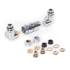 Das linke thermostatische Winkelset enthält: thermostatisches Ventil, Abschlussventil, thermostatischer Kopf SLIM, Adapter AL-PEX ∅ 16x2 und Kupfer ∅ 15.