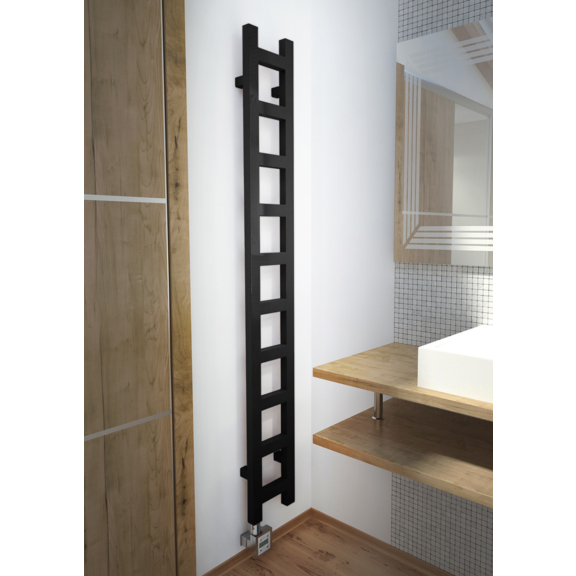 Diese Variante ist ein Wandheizkörper. Sein funktionelles und modernes Design unterstützt die Konstruktion in klassischer Leiterform, die aus Rechteckstahlrohrprofilen mit Ausmaß von 30x40 mm besteht.