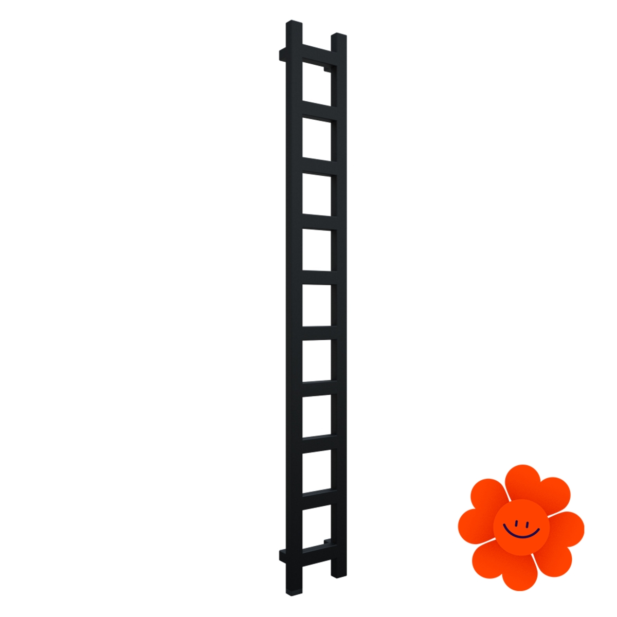 Diese Variante ist für die Wandbefestigung bestimmt. Sein funktionelles und stilvolles Design unterstützt die Konstruktion mit einer Form des Leiters, die aus rechteckigen Stahlrohren mit Abmessungen von 30x40 mm besteht.