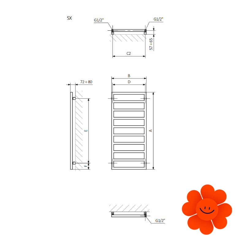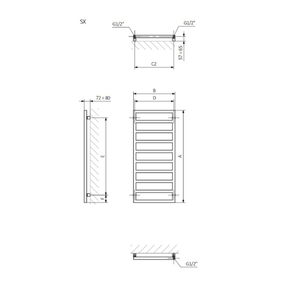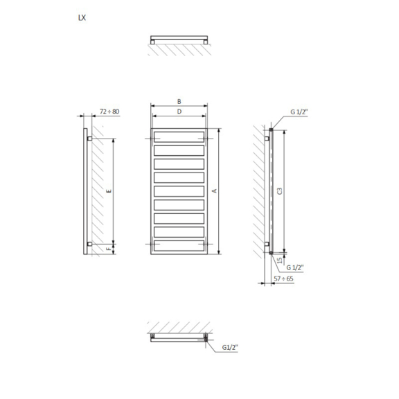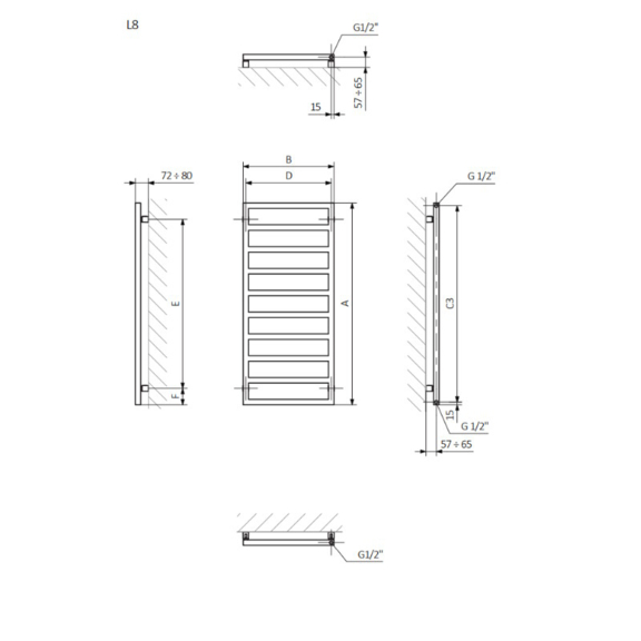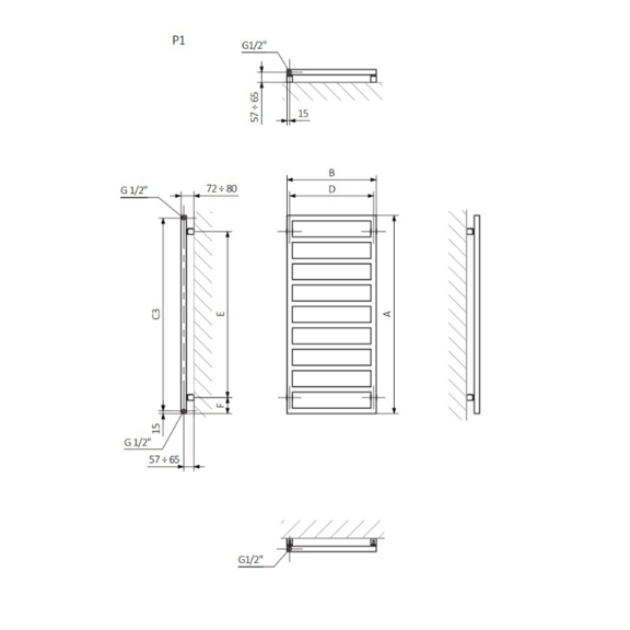 Verfügbare Versionen: Wasserheizung. Heizleistung: 217 - 707 W.