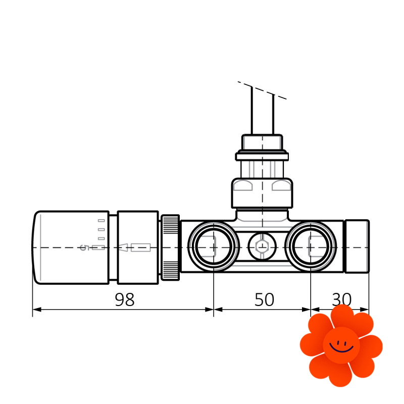 Terma integriertes thermostatisches Eckventilset mit Tauchrohr – link