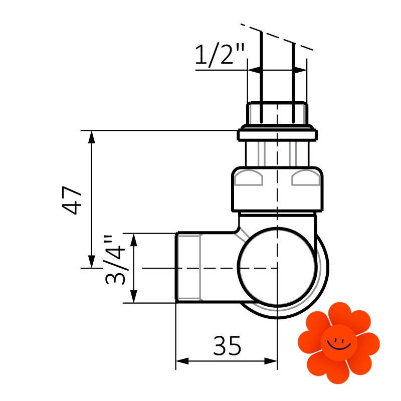 - Anschlussgewinde auf dem Heizkörper: G 1/2"