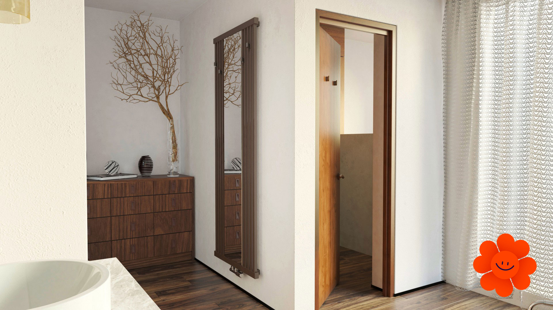 TERMA Intra M ist ein exklusiver Heizkörper der mit einem zentral angebrachten Spiegel ausgestattet wird. Intra M ist ein prächtiges Designstück, das die Einrichtung im Vorraum, Wohnzimmer, Schlafzimmer oder Badezimmer dekoriert. Der Heizkörper beheizt jeden Raum, wo Sie auch gern in den Spiegel schauen.