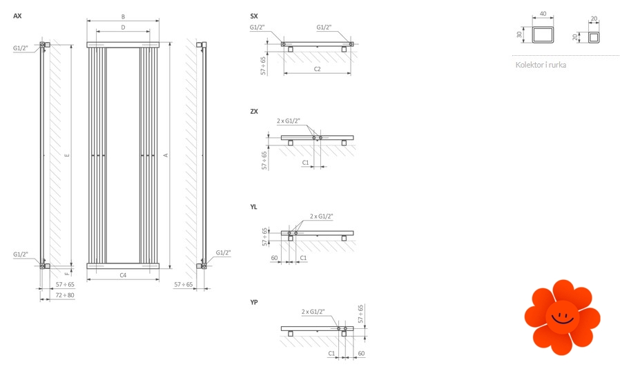 Das breite Farbspektrum (246 Farben) hilft Ihnen, den Heizkörper genau nach Ihren Vorstellungen zu wählen. Dank diesem können Sie den Heizkörper der Hintergrundfarbe anpassen oder seine Farbe und Form betonen und damit wird er in Ihrem Haushalt als ein originelles Wohnaccessoire dienen.