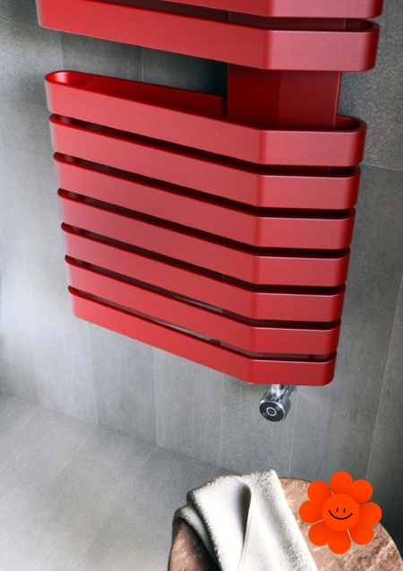 Der asymmetrisch positionierte Kollektor ermöglicht dem Heizkörper, die Handtücher perfekt zu trocknen.