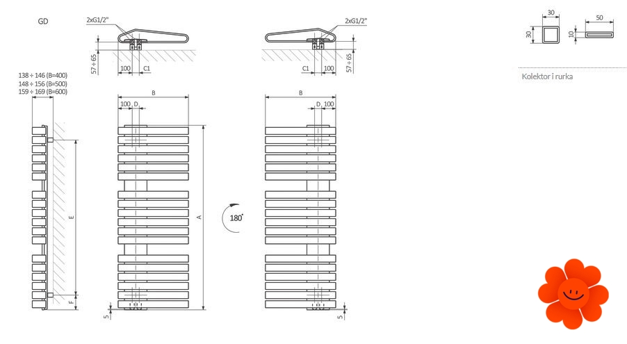 Lieferbar auch in der Ausführung mit dem Warmwasser-Betrieb. In unserem Angebot finden Sie auch den Wandheizkörper der Reihe Iron - Iron D.