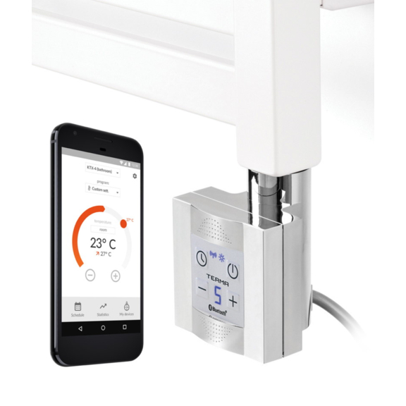 Regler KTX 4 Blue mit einem attraktiven Design kann man dank Bluetooth-Technologie mittels Terma-App in Ihrer Smart-Einrichtung steuern. Ein großer Vorteil dieses Reglers ist ein günstiger Energiehaushalt. Dank dieser App in Ihrer Smart-Einrichtung können Sie den Regler nach Belieben steuern (Temperatureinstellung, fortgeschrittener Tages- und Wochen-Timer). Den Regler kann man auch mittels Tasten am Regler steuern. Man kann damit Temperatur oder Timer für 1-4 Stunden einstellen. Er erwärmt den elektrischen Heizkörper und kontrolliert zugleich genau seine Temperatur. Der Regler hat auch die Betriebsstundenzähler-Funktion.