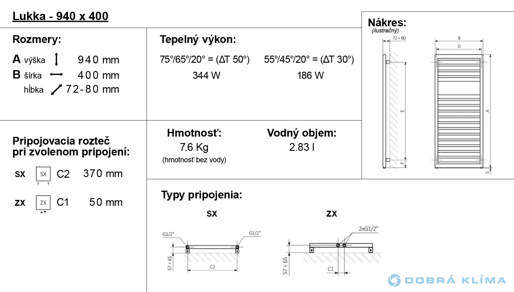 Lukka ist in der Ausführung mit dem Warmwasser- und elektrischen Betrieb verfügbar. Wärmeleistung: 344-883 W.