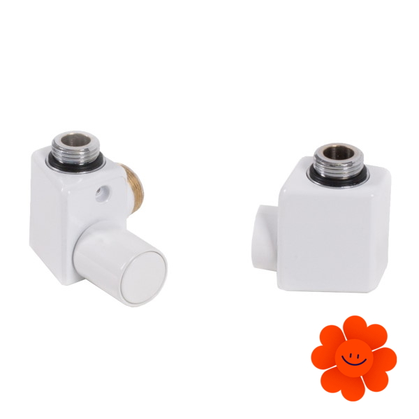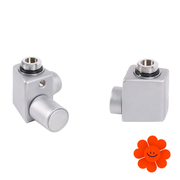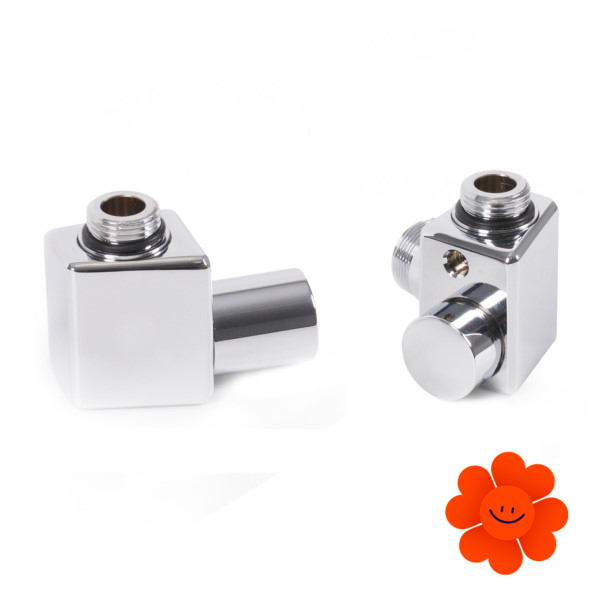 Linkes manuelles Winkelset enthält: ein Regelventil, ein Absperrventil, Adapter AL-PEX ∅ 16x2 und Kupfer ∅ 15.