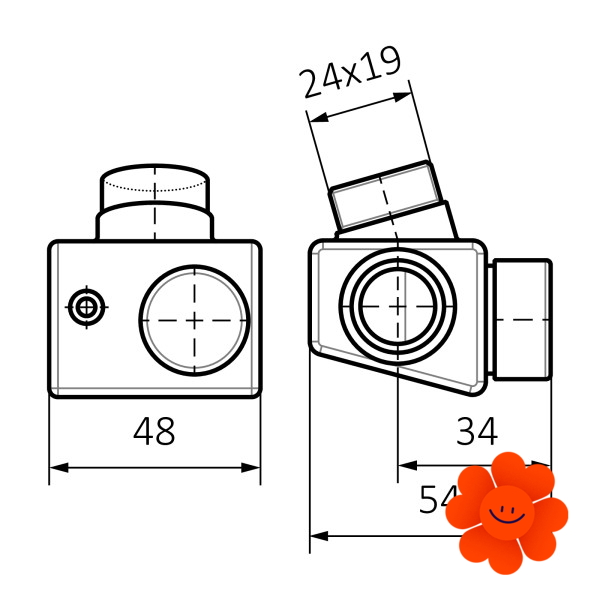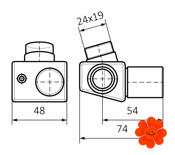 • Anschluss für Rohre: 24x19
