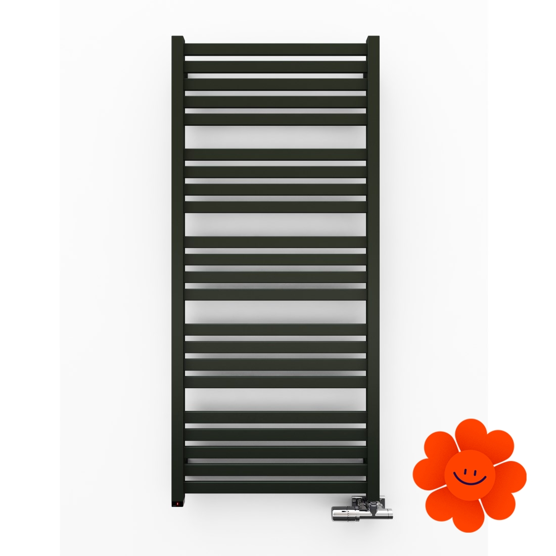 Der platte Designheizkörper Marlin mit der eingebauten Heizpatrone ONE. Die im Kollektor versteckte Heizpatrone ONE verändert nicht die Form des gesamten Heizkörpers und gleichzeitig ermöglicht Ihnen, den Raum außerhalb der Heizsaison zu beheizen und die Trocknung von Kleidern zu genießen.