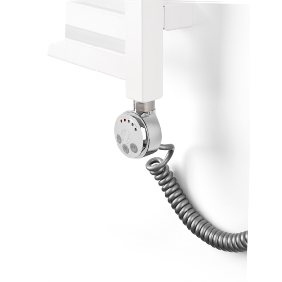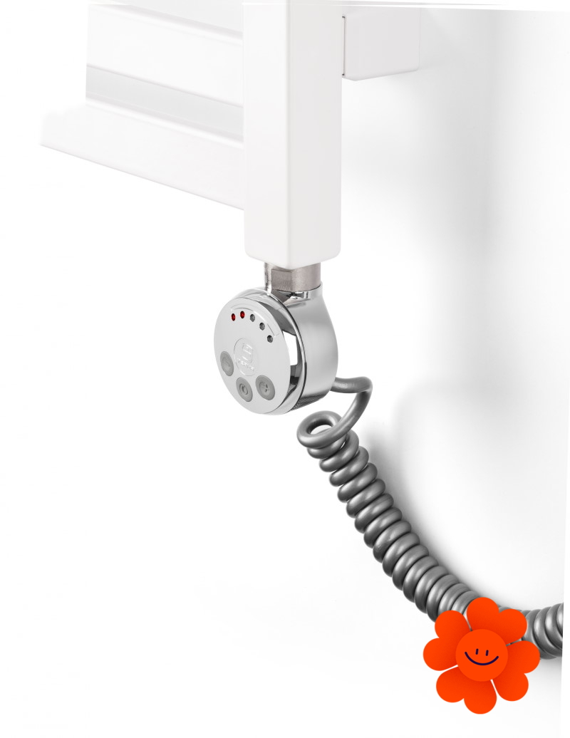 Der Regler MEG mit einem modernen Design kann im Temperaturbereich 30-60 °C mit 5 Einstellungsmöglichkeiten eingestellt werden. Der Dioden-System indiziert die aktuelle als auch eingestellte Temperatur. Der Regler erwärmt den elektrischen Heizkörper und kontrolliert zugleich genau seine Temperatur.