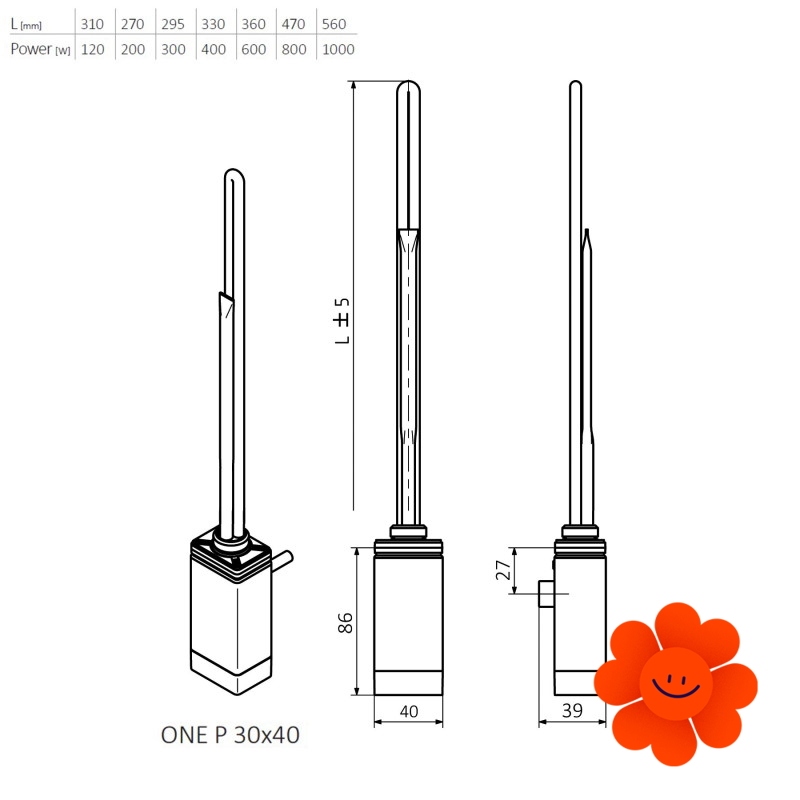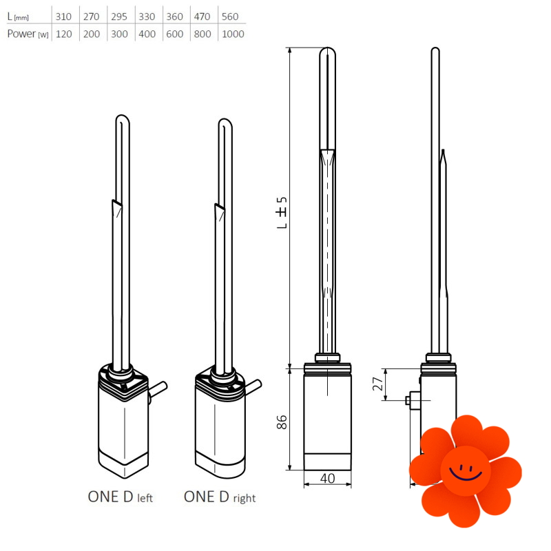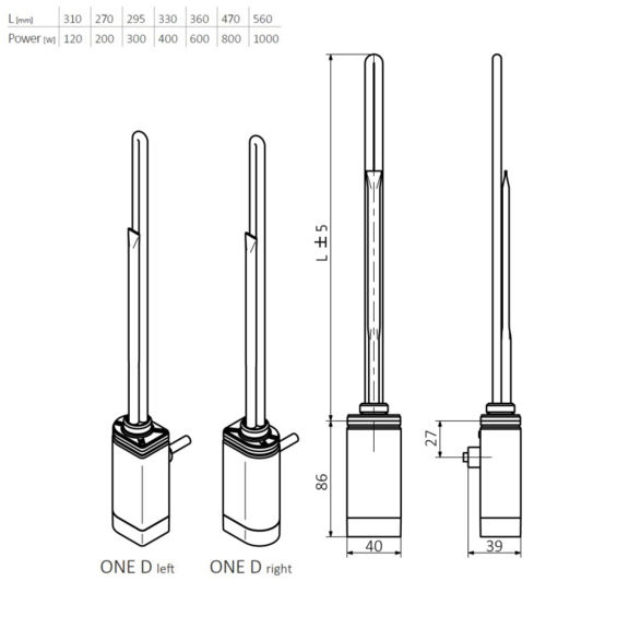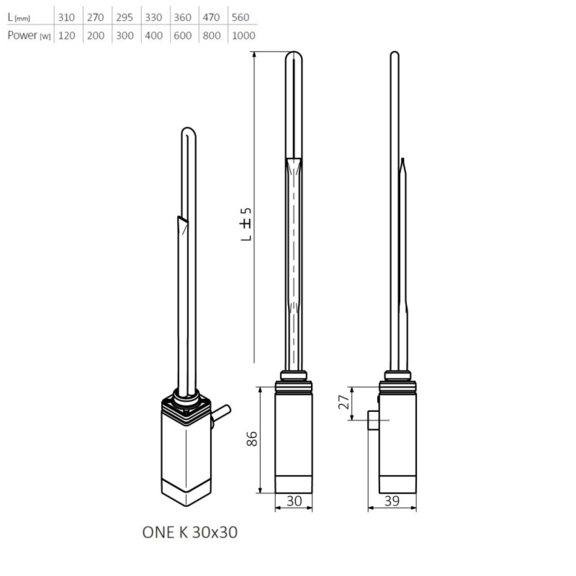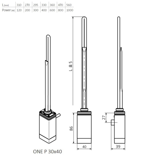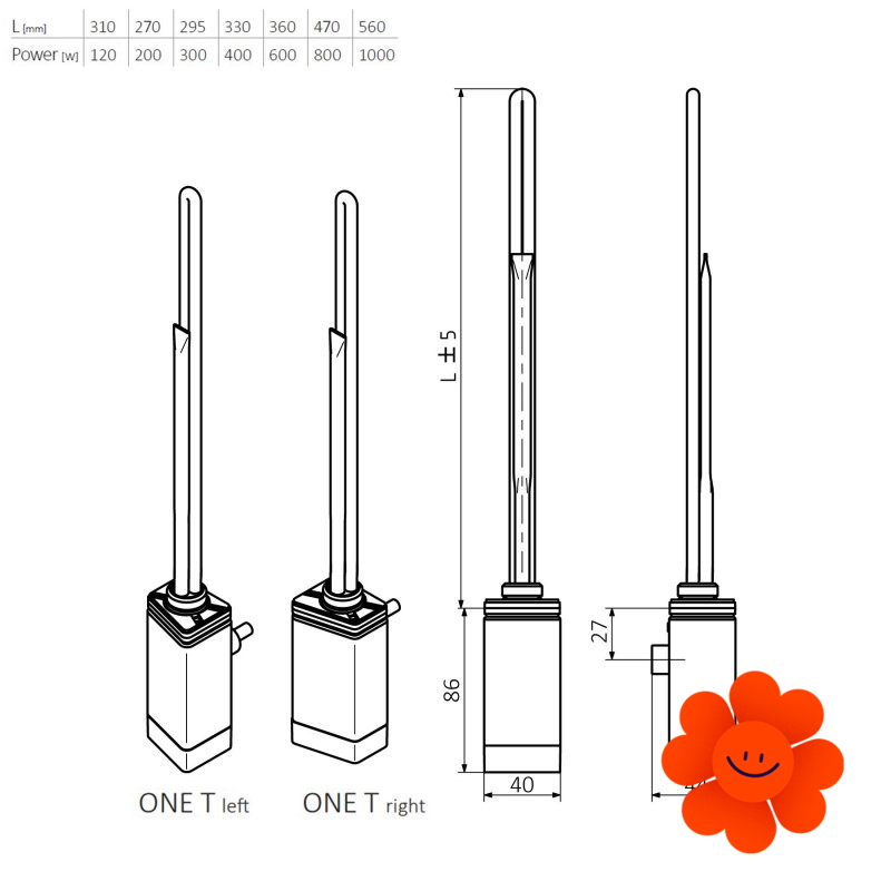- ONE T - 36x40x89 mm (passend für elektrischen Heizkörper Dexter ONE und Dexter Kombi)