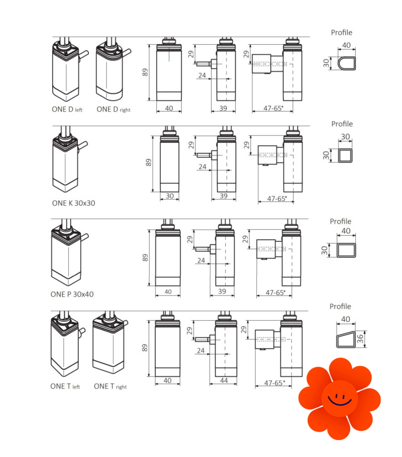 Der Einbau ist durch das symmetrische Gehäuse für die Regler ONE K und ONE P sowohl auf der rechten als auch auf der linken Seite des Heizkörpers möglich. Bei den Reglern ONE D und ONE T muss ausgewählt werden, auf welcher Seite des Heizkörpers sich der Regler befinden soll.