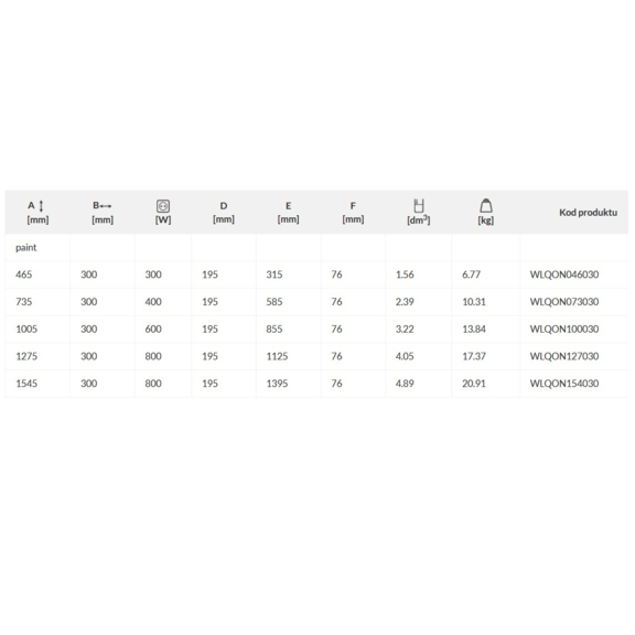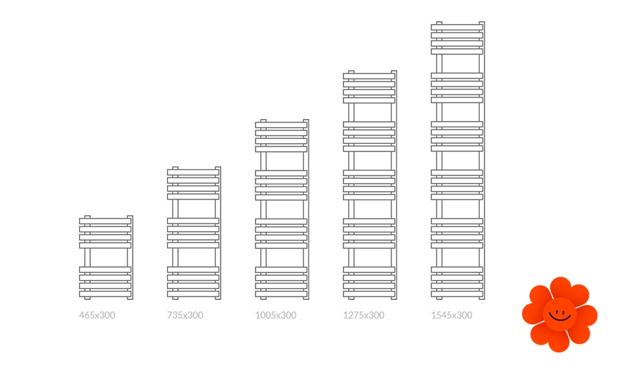 Erhältliche Varianten: elektrischer und Warmwasser-Betrieb. Wärmeleistung: 300-800W.