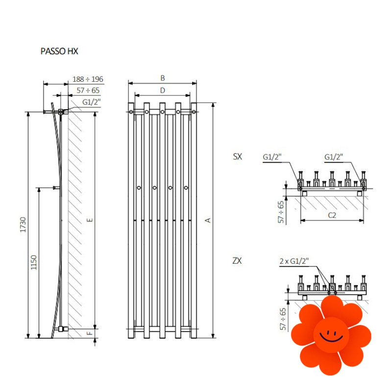 Der vertikale Heizkörper TERMA Passo HX ist ein einzigartiger Heizkörper mit Hakenreihen. Sein Design verbindet gerade und gebogene Profile, was dem Heizkörper ein einzigartiges Aussehen gibt. Dank seiner Vielfalt ist er in alle Räume geeignet, am besten bewährt er sich aber im Flur oder Bad.
