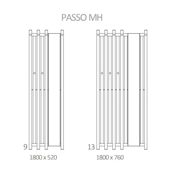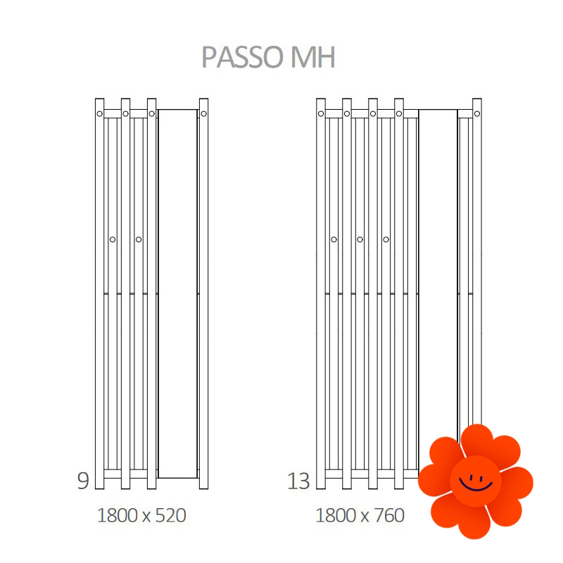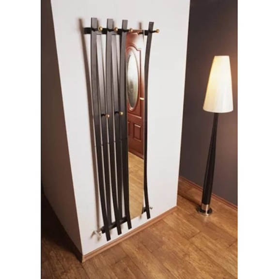 Der vertikale Heizkörper TERMA Passo HX ist ein einzigartiger Heizkörper mit einem Spiegel und Hakenreihen. Sein Design verbindet gerade und gebogene Profile, was dem Heizkörper ein einzigartiges Aussehen gibt. Dank seiner Vielfalt ist er in alle Räume geeignet, am besten bewährt er sich aber im Flur oder Bad.