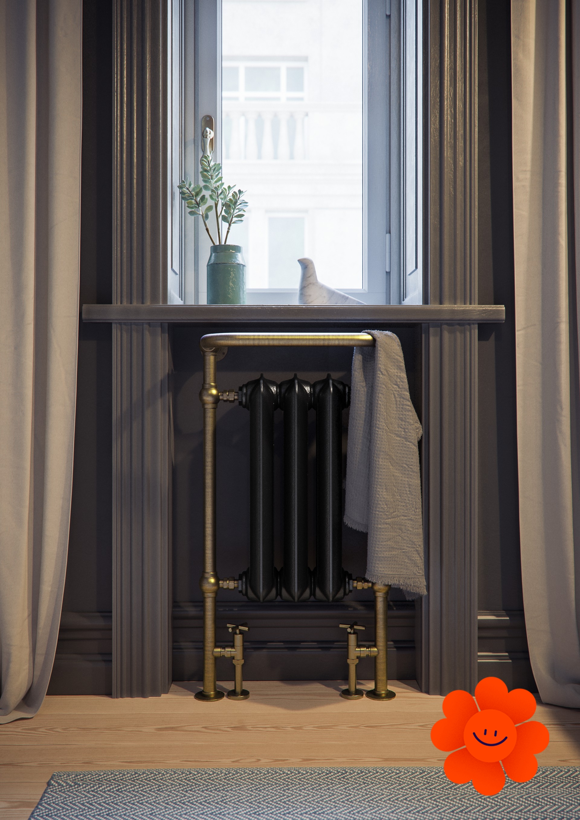 Der Heizkörper TERMA Plain Towel Rail ist ein Guss-Gliederheizkörper, der als Raumdominante dort geeignet ist, wo Eleganz und Ästhetik wichtig sind. Die Glieder sind aus Gusseisen hergestellt und nach der Maschinenherstellung, um das perfekte Ergebnis zu erzielen, von Hand bearbeitet. Der Stahlrahmen bietet vor allem Platz zum Trocknen von Handtüchern.