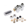 Rechter thermostatischer Mittelset beinhaltet: hermostatisches Ventil, Absperrventil, thermostatischen Kopf SLIM, Adapter AL-PEX ∅ 16x2 und Kupfer ∅ 15.