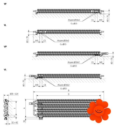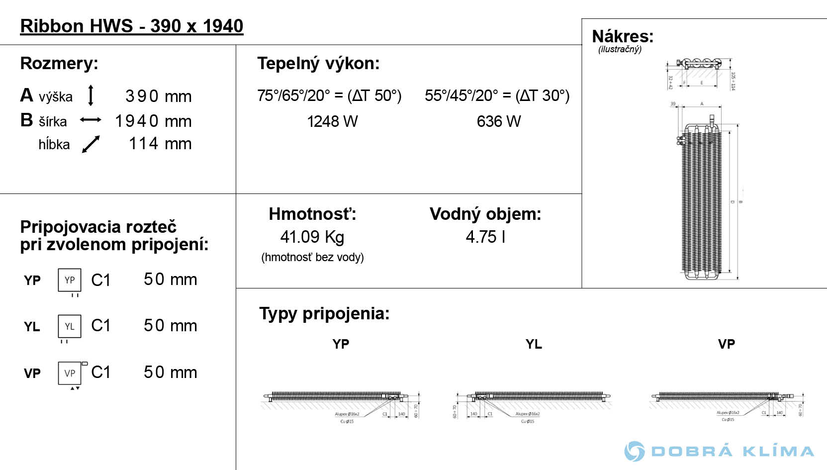 Hier führen wir die horizontale Variante des Heizkörpers Ribbon „HWS“ mit einfacher Anordnung von Rippenrohren zum Aufhängen an die Wand an. Ribbon HWS ist auch in der Ausführung mit dem Warmwasser-Betrieb erhältlich. Wärmeleistung: 802-1673 W.