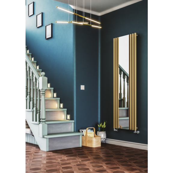 Rolo Mirror ist ein eleganter vertikaler Heizkörper mit Spiegel, der für verschiedene Innenräume, insbesondere Fluren, geeignet ist. Durch seine universelle Form und seinen praktischen Nutzen eignet er sich auch für Badezimmer. Mit einer großen Auswahl an Farbmöglichkeiten kann der Heizkörper an jeden Stil angepasst werden.