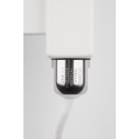 Terma SIM Regler ist ein einfaches Heizelement aus rostfreiem Stahl. Er ist mit der Wärmesicherung ausgestattet, die eine Übererwärmung verhindert. SIM verfügt über keinen eingebauten Schalter, aber am Kabelende befindet sich eine Schaltsicherung.