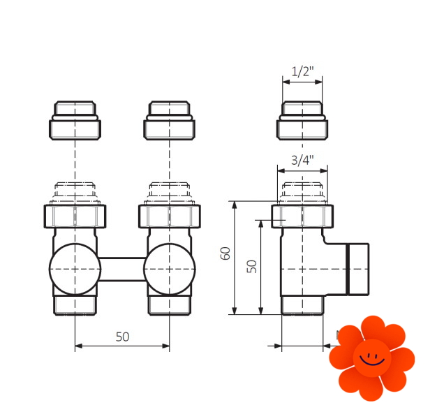 • Anschlussgewinde am Heizkörper: G 3/4", inklusive Reduktion zu 1/2“