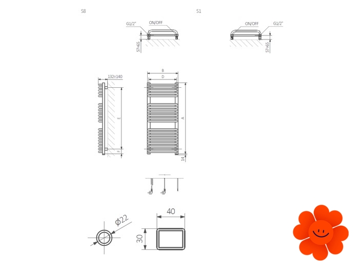 Tytus - Trockner und Heizkörper mit der doppelten Reihe von Rohren wird mit einer im Kollektor versteckten Heizpatrone ausgestattet, die nicht die Form des gesamten Heizkörpers beeinflusst. Die Heizpatrone ermöglicht Ihnen, alle Vorteile der Elektroheizung zu genießen: Heizen und Trocknen der Kleidung außerhalb der Heizsaison.