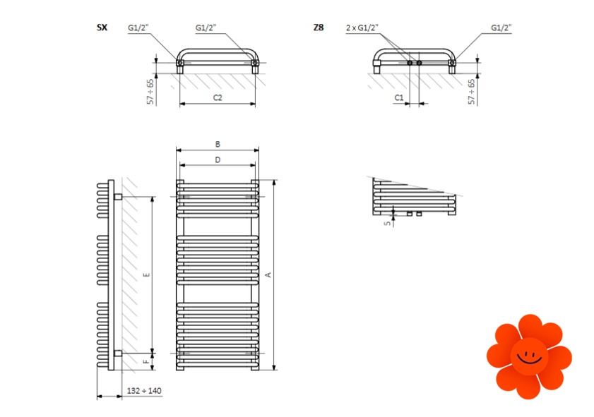 Angesichts seiner Größe verfügt der funktionelle und stilvolle Badheizkörper über den sehr hohen Wirkungsgrad. Die Doppelreihe von angeordneten Rohren sorgt für eine effiziente Raumheizung und gleichzeitig für eine komfortable Trocknung von Textilien an den vorderen Rohren.