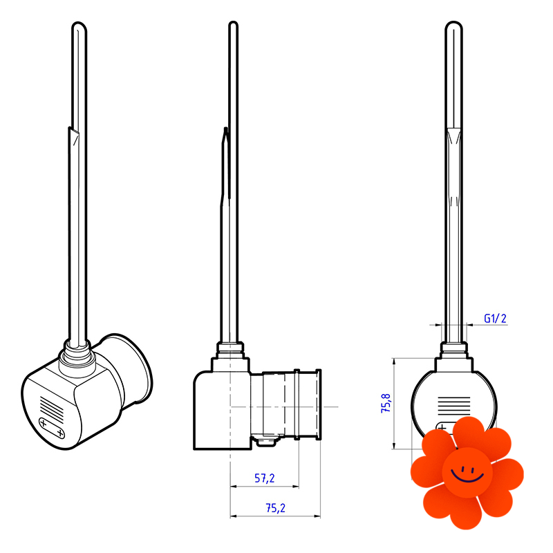| Anschluss an den Heizkörper | 1/2" | |