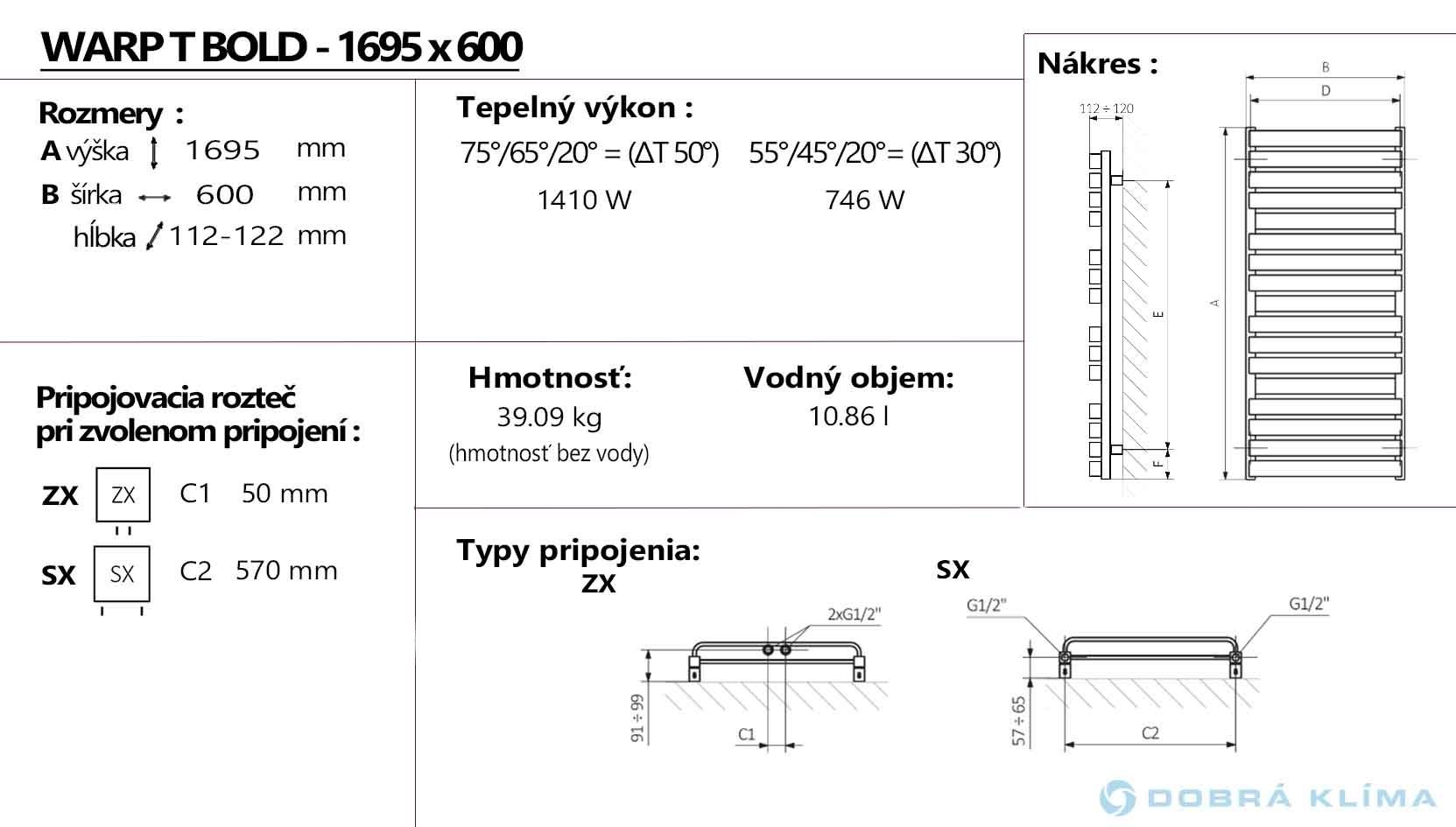 Verfügbare Ausführung mit dem Warmwasser-Betrieb, in unserem Angebot finden Sie auch das elektrische Modell Warp T Bold ONE mit eigener Heizpatrone. Zur Wahl haben Sie eine breite Palette von Farbvarianten. Wärmeleistung: 460-1410 W.