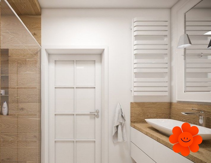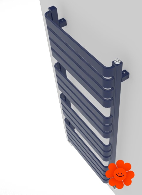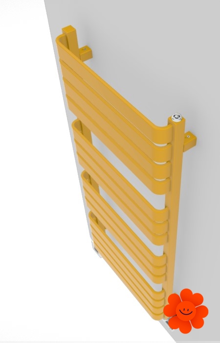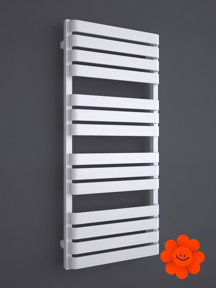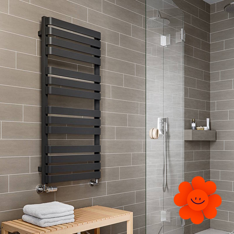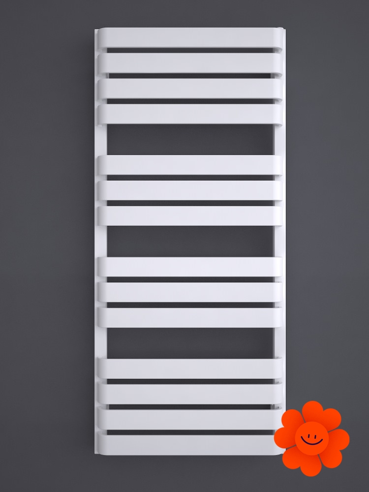 Seine große Heizfläche aus dünnen horizontalen Elementen erfüllt die Trockenfunktion in einem Badezimmer. Dank einer eigenartigen Gestaltung der flachen Profile hat der Heizkörper ein eigenartiges Design.