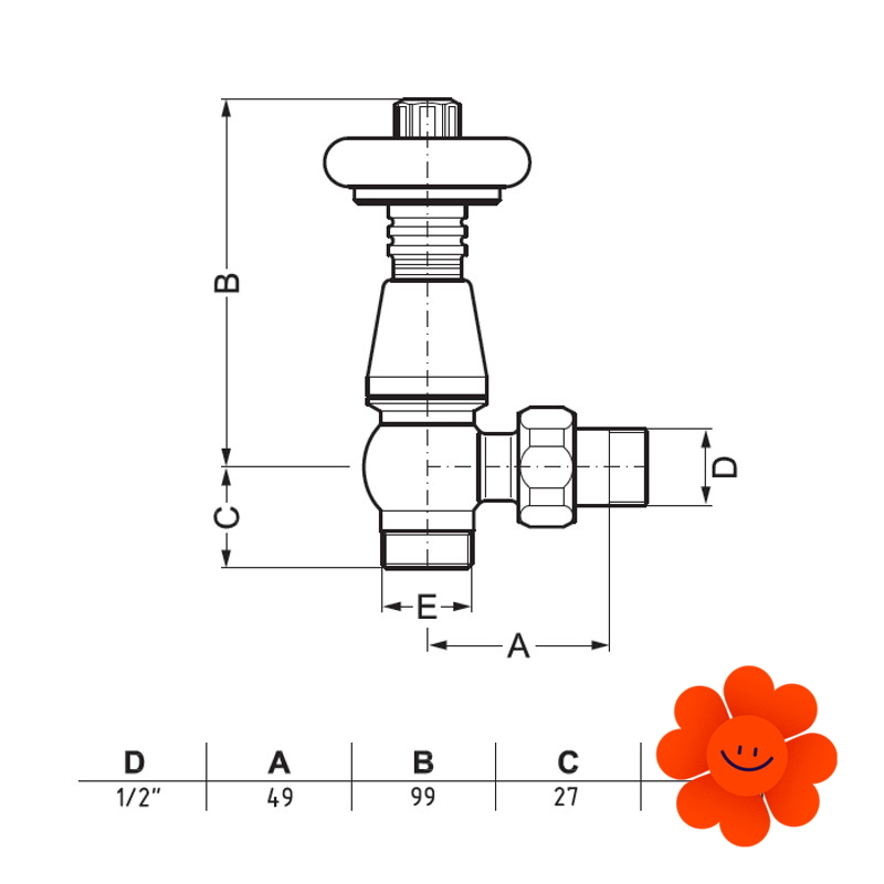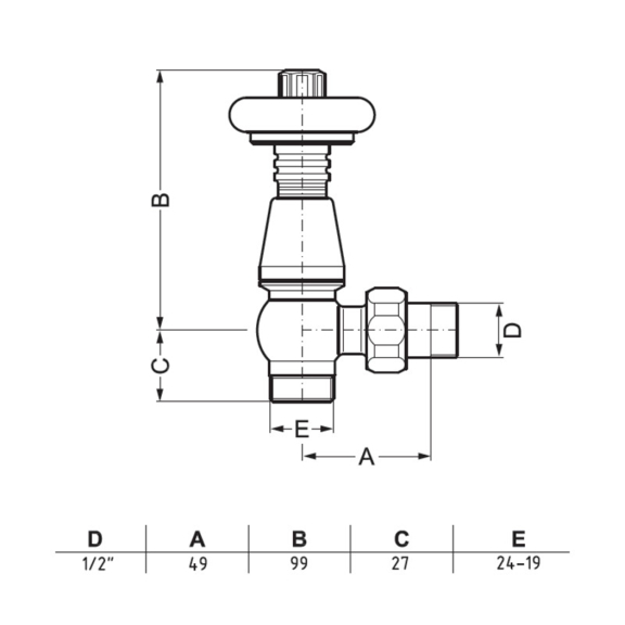 - Anschlussgewinde auf dem Heizkörper: G 1/2"