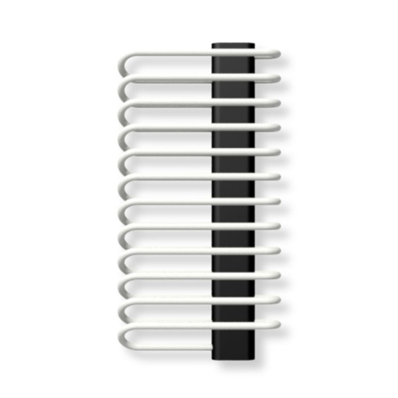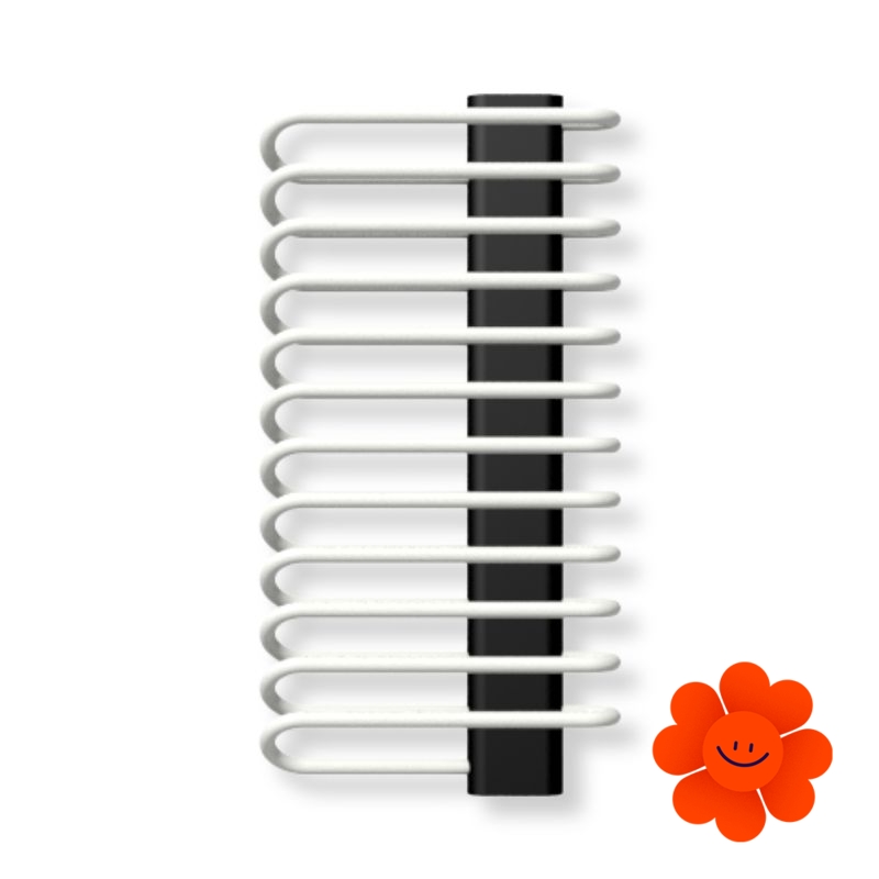Ein einzigartiges Merkmal dieses Modells ist die Möglichkeit, verschiedene Farben für die Kühlerabdeckung und den Kollektor zu wählen, wobei jedes Element auch mit einer Chromoberfläche erhältlich ist. Die leichte, durchbrochene Form ermöglicht den Einsatz des Heizkörpers in Räumen unterschiedlicher Größe und der verschiebbare Kollektor ermöglicht das einfache Aufhängen von Handtüchern zum Trocknen.