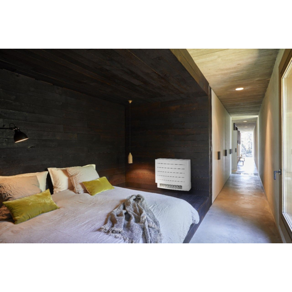 Das Truhengerät Daikin Perfera FVXM-A wurde vor allem für den optimalen Heizkomfort dank seiner einzigartigen Heizfunktionen entworfen. Die flache Platte sichert ihre perfekte Anpassung an das Interieur und der Modus für komfortable Luftströmung bietet eine angenehme Luftdistribution auch am Fußboden. Die perfekt reine Luft sichert der Ionisator Flash Streamer und die feinen Filter.