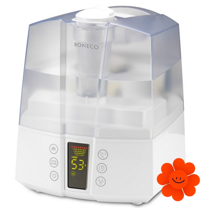 Der Vorteil dieses Modells ist Wasservorwärmung, die Befeuchtungsleistung erhöht. Er wird mit einem Entkalkungsmittel geliefert, das Wasser von Kalk- und Mineralpartikeln beseitigt.