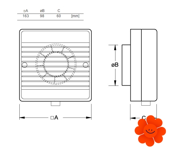 • Typ BF - Axialventilator (Klappe kann man als Zubehör nachkaufen)