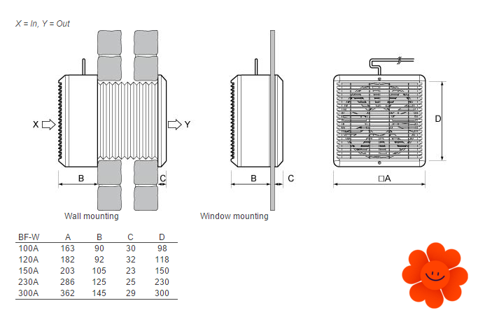 Axialventilator BF-W 120A eignet sich für die Montage an Fenster bzw. durch die Wand.