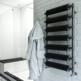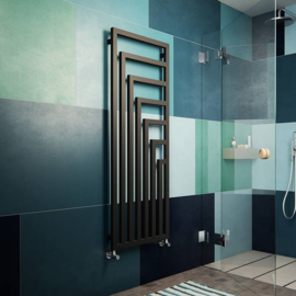 Wir bieten die vertikalen Heizkörper in mehreren Farbausführungen ab. Sie können aus unterschiedlichen Metallic-Lackierungen und Texturen wählen. Manche vertikale Heizkörper verfügen über praktische Handtuchhalter, die traditionelle Handtuchständer ersetzen.