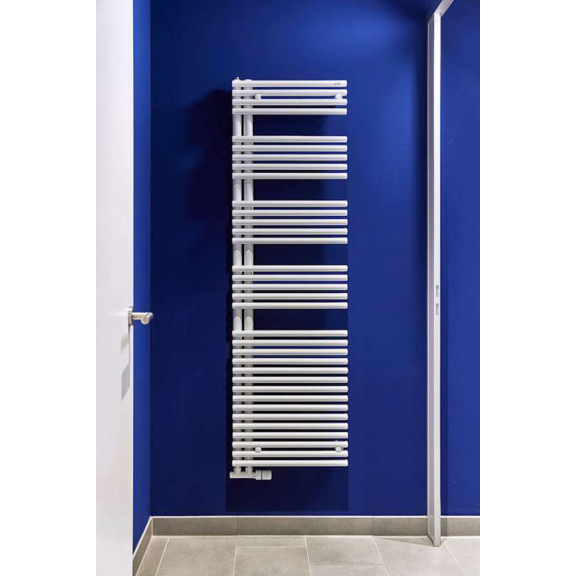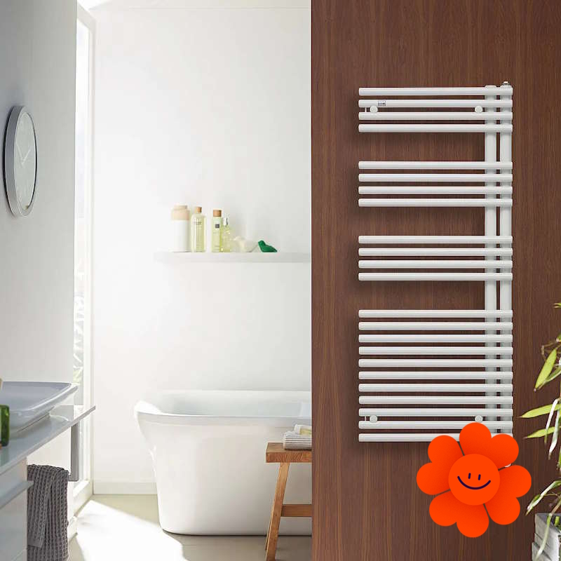 Sein zeitloses Design mit vernetzten Rohren bringt angenehme Wärme und eine entspannte Atmosphäre ins Bad. Der Heizkörper hat einen größeren Abstand zur Wand, was viel Platz für flauschige und schnelltrocknende Handtücher bietet.