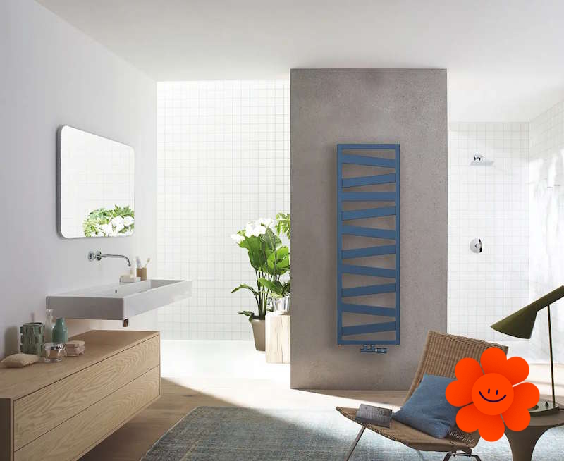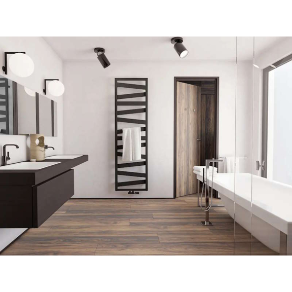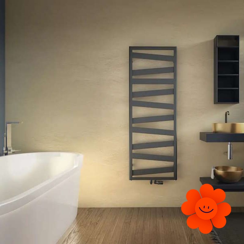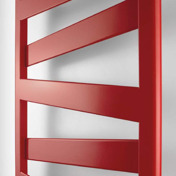 Zwei Reihen diagonal angeordneter Flachrohre verleihen dem Heizkörper ein modernes und innovatives Aussehen, das zudem ein effizientes Handtuchtrocknen ermöglicht.