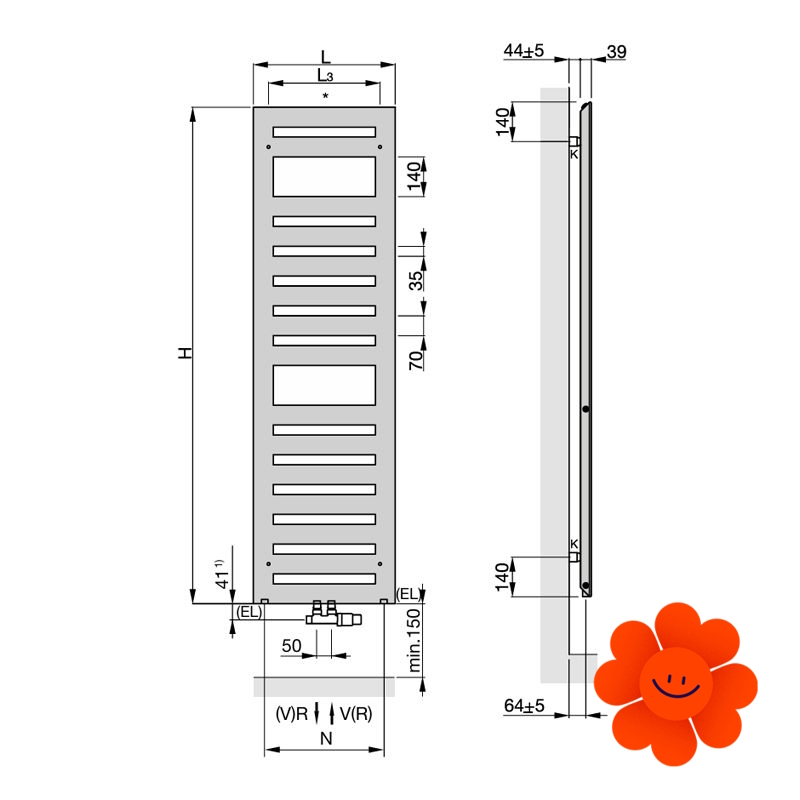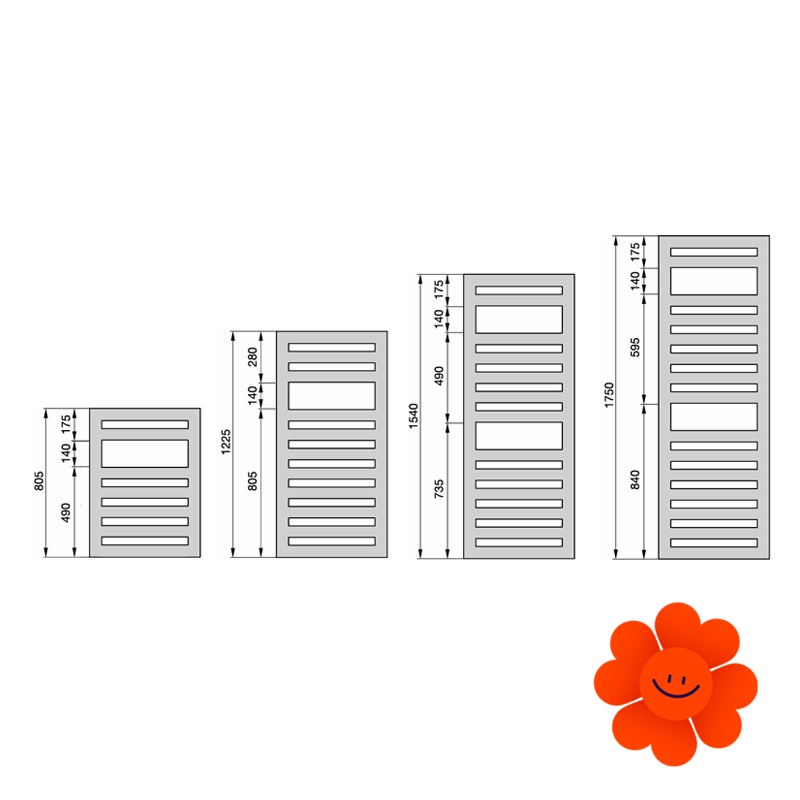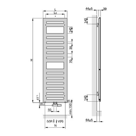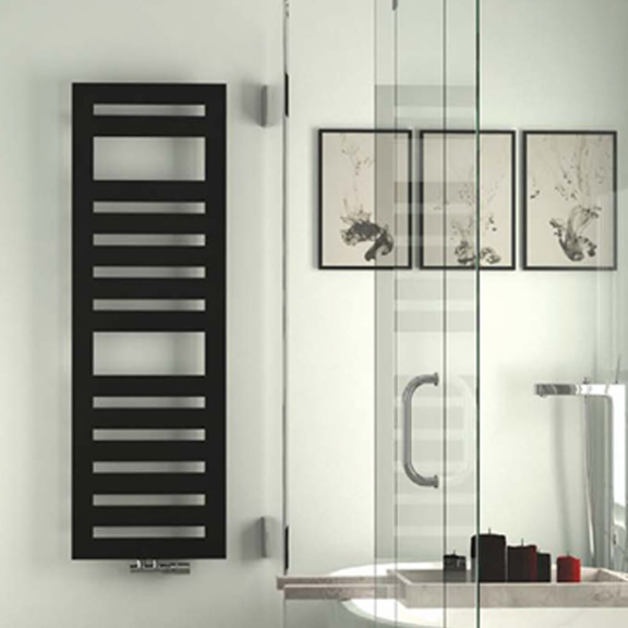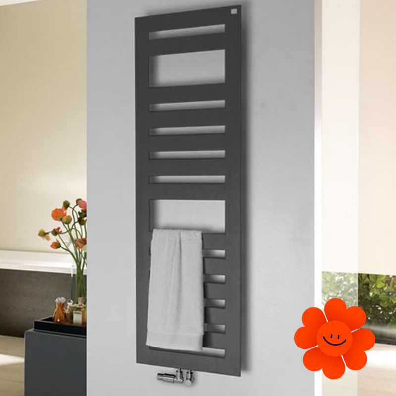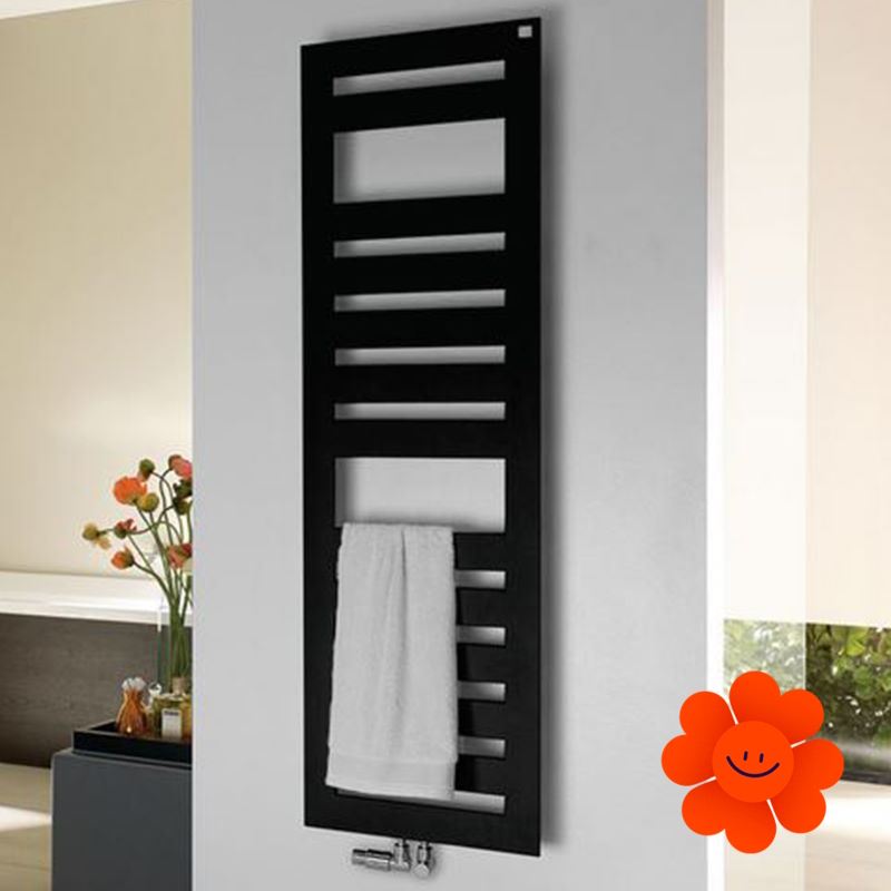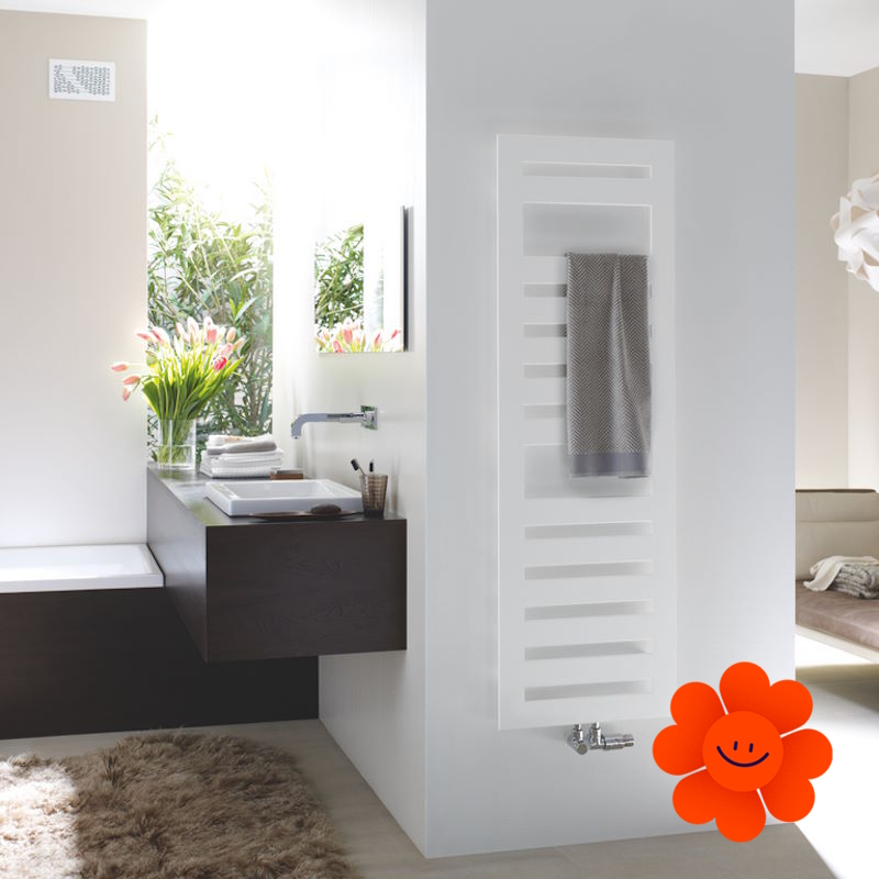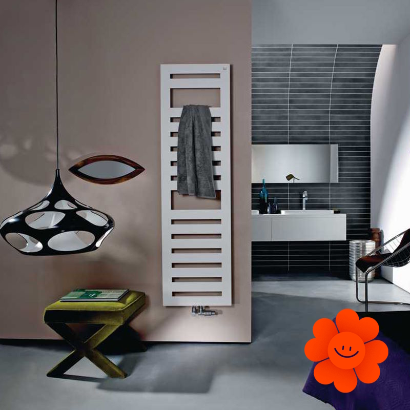 Die glatte Oberfläche verleiht dem Heizkörper ein elegantes Aussehen, während das dreieckige Profil des Rahmens für optische Leichtigkeit sorgt und sein modernes Design unterstreicht. Für noch mehr Flexibilität und Komfort sorgen optional erhältliche variable Handtuchhalter. Ein hoher Strahlungswärmeanteil garantiert den höchsten Komfort, während die leichte und subtile Konstruktion die Ästhetik betont.