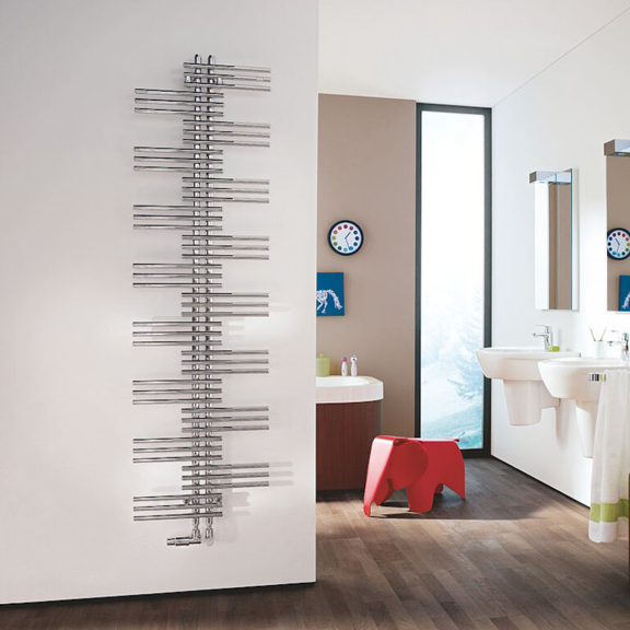 Zehnder Yucca ist ein origineller Heizkörper mit einzigartigem Design in Form einer „Palme“. Die symmetrische Anordnung der seitlich offenen Rundrohre bietet eine ideale Lösung zum Aufhängen von Handtüchern, Bademänteln oder anderen Kleidungsstücken. Es zeichnet sich durch ein subtiles Erscheinungsbild und eine geringe Bautiefe aus, wodurch es auch für enge Räume geeignet ist.
